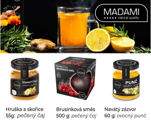 Šťavnaté čaje, punče, sirupy, ořechy, granoly i směsi a základy na přípravu pokrmů