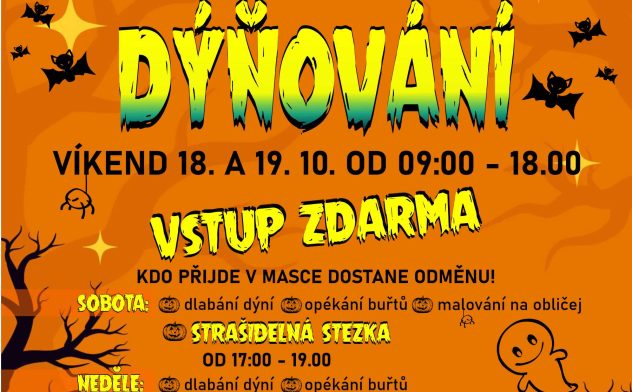 DÝŇOVÁNÍ v Zahradnickém centru Jelínek – 18. a 19. října! Zveme vás na víkend plný zábavy, strašidel, dlabání dýní, hudby a opékání!Kdo přijde v masce, dostane odměnu 🎁Vstup zdarma! Přijďte si užít podzimní atmosféru a společně si vyřezat tu nejhezčí dýni! 👻🎶🔥 Vyřezávání dýní a kreativní činnosti probíhají ve vnitřních prostorách, takže se nemusíte obávat … Continue reading DÝŇOVÁNÍ 18 – 19. ŘÍJNA